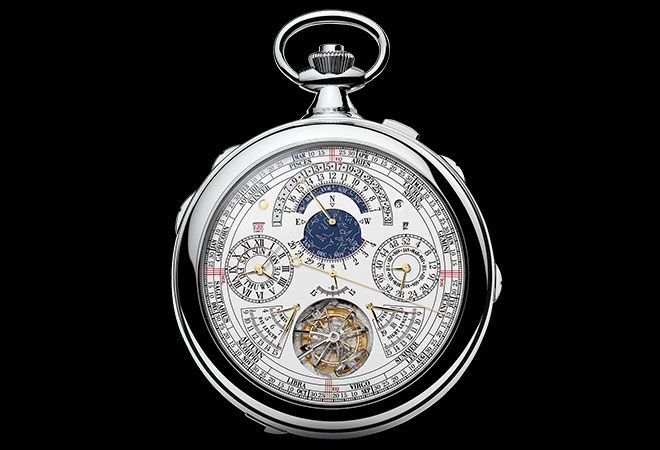 82 años después de Patek, Vacheron Constantin rompió todos los récords de complicaciones de la «era moderna» en 2015. Aún así, los relojeros de la marca suiza necesitaron ocho años para desarrollar esta pieza única diseñada para un coleccionista privado. Entre sus 57 complicaciones, incluye siete alarmas, siete calendarios perpetuos, nueve funciones astronómicas.