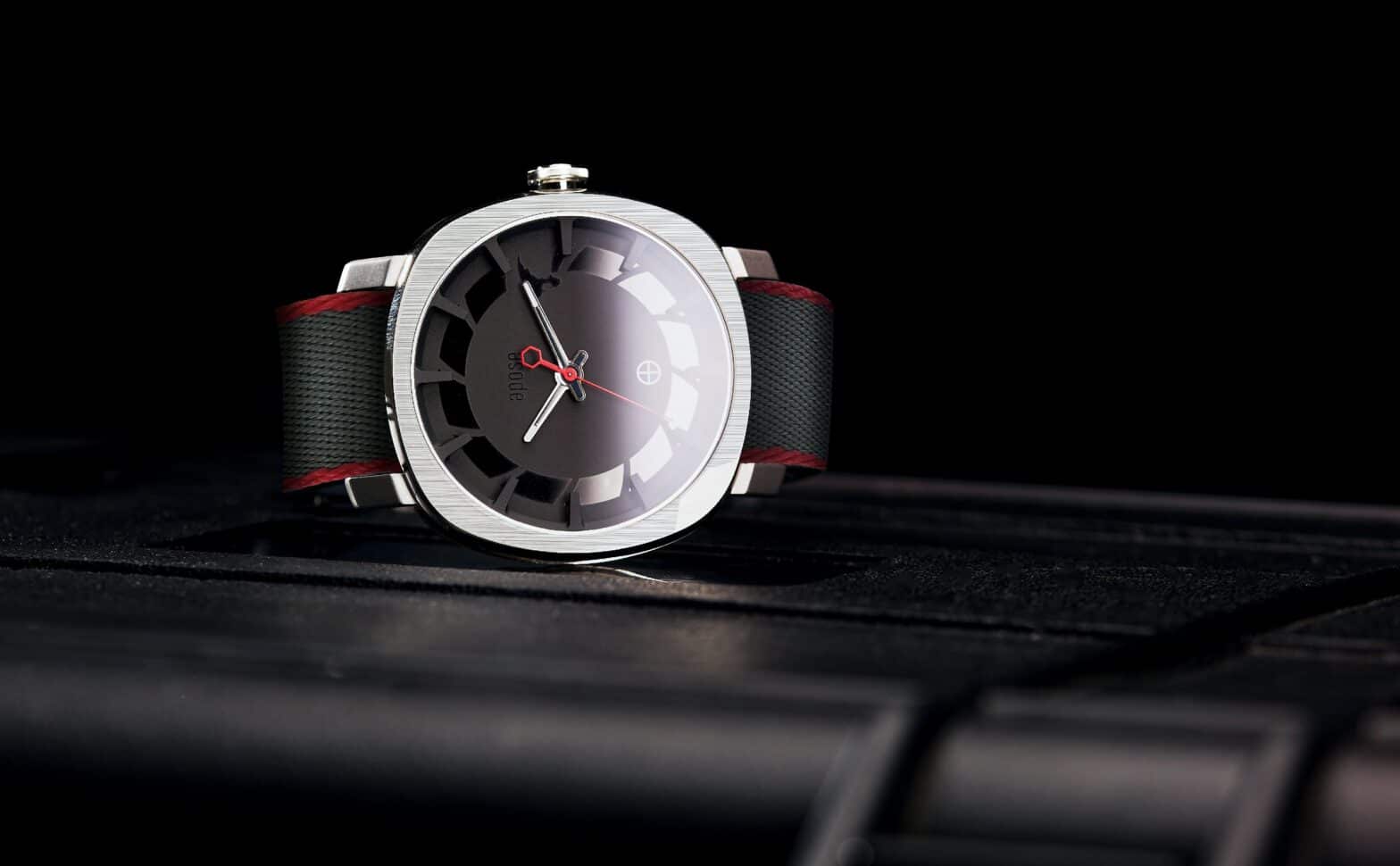 Encontramos el diseño del reloj N°3 con su emblemática caja de 40 mm de diámetro, ni redonda ni cuadrada. Diseñado en acero, está compuesto por 3 niveles de diferentes acabados, para ofrecer un bonito juego de luces y materiales. Sobrio en apariencia, la esfera también ha sido objeto de un meticuloso trabajo. Los índices esculpidos, por ejemplo, dan la impresión de flotar sobre la esfera, cuyo gráfico fue creado especialmente para la Brigada de Investigación e Intervención (cuyo logo aparece a las 6h).