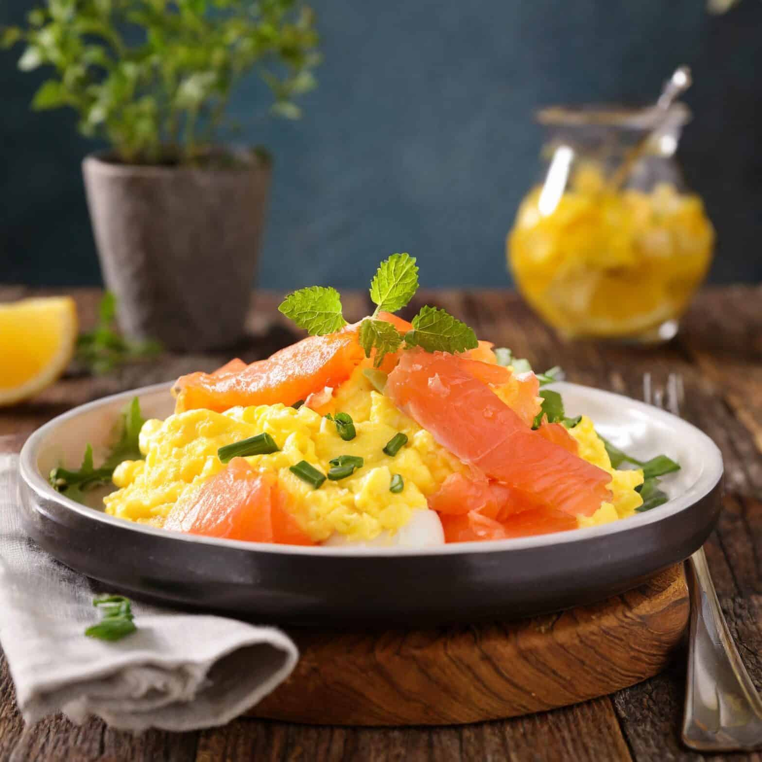 El secreto para un desayuno lujoso exitoso: Huevos revueltos y salmón ahumado