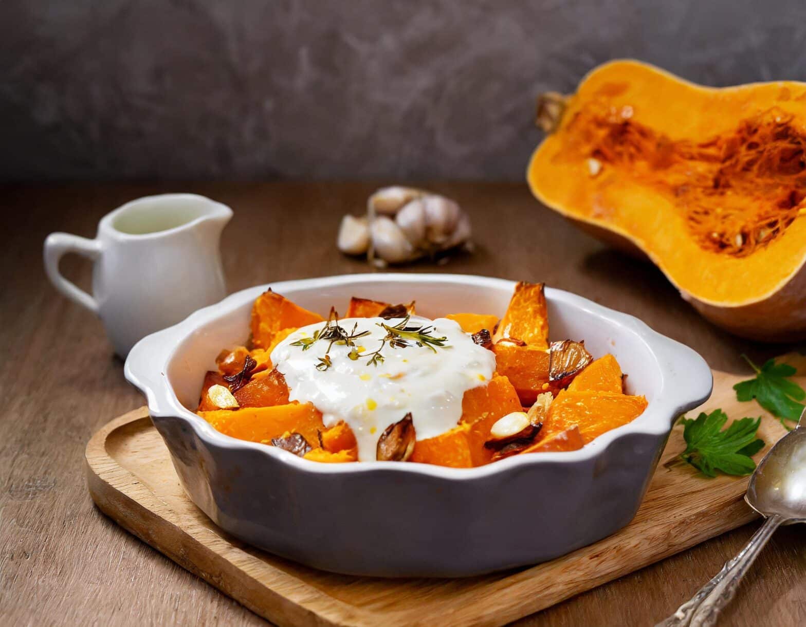 ¡Debes probar absolutamente esta salsa de queso feta, ajo confitado y limón con verduras asadas!
